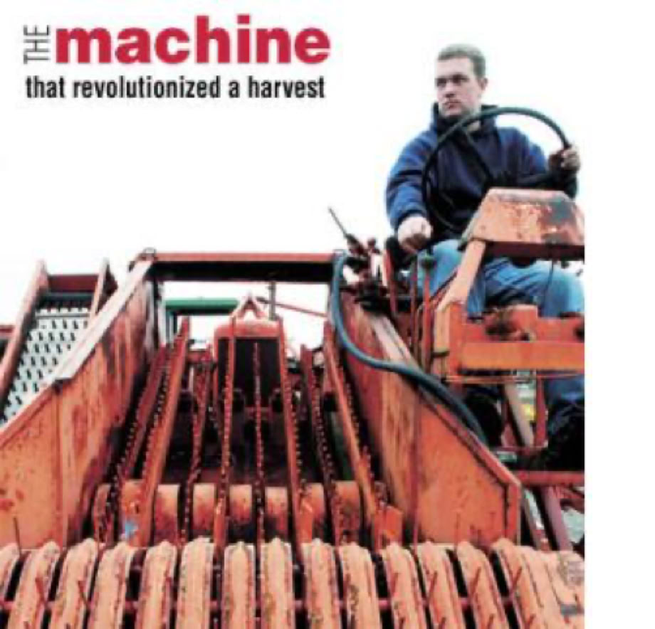 Most USA processed tomato products come from California. The green as Kermit tomatoes are harvested while still brick hard by machine. Once upon a time the thought of mechanically harvesting tomatoes seemed ridiculous to most reasoning folk. But not to University of California's crop researcher Gordie "Jack" C. Hanna. Much to his colleague's dismay, in 1942 Gordie began his search for the tomato that could stand up to the rigors of machine harvest. Although his friends warned him he could ruin UC's reputation through such a Quixotic venture, Gordie insisted on walking tomato fields and tossing tomatoes on to the road. Those that didn't smash or crack were selected for his breeding program. In 1949 Gordie began collaborating with UC's agricultural engineer Coby Lorenzen to develop a mechanical tomato harvester.