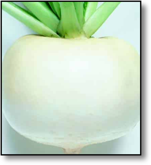 Just Right turnip, an AAS Winner bred by Takii Seed of Tokyo, is by far the best variety of turnip I have grown. It retains its crisp texture and mild flavor at full grown size and will keep in storage until spring! It is frost tolerant at 28 F and can be summer sown for a late Fall crop.