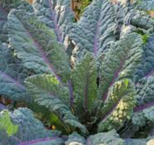 Dazzling Blue lacinato-type kale’s vigorous plants produce leaves with purple midribs and a range of colors that intensify in cool temperatures. Dazzling Blue is hardier than the traditional Lacinato. It was bred by Hank Keogh of Avoca Seed Farm, and produced in association with Wild Garden Seed in Oregon. This variety is protected by the Open Source Seed Initiative