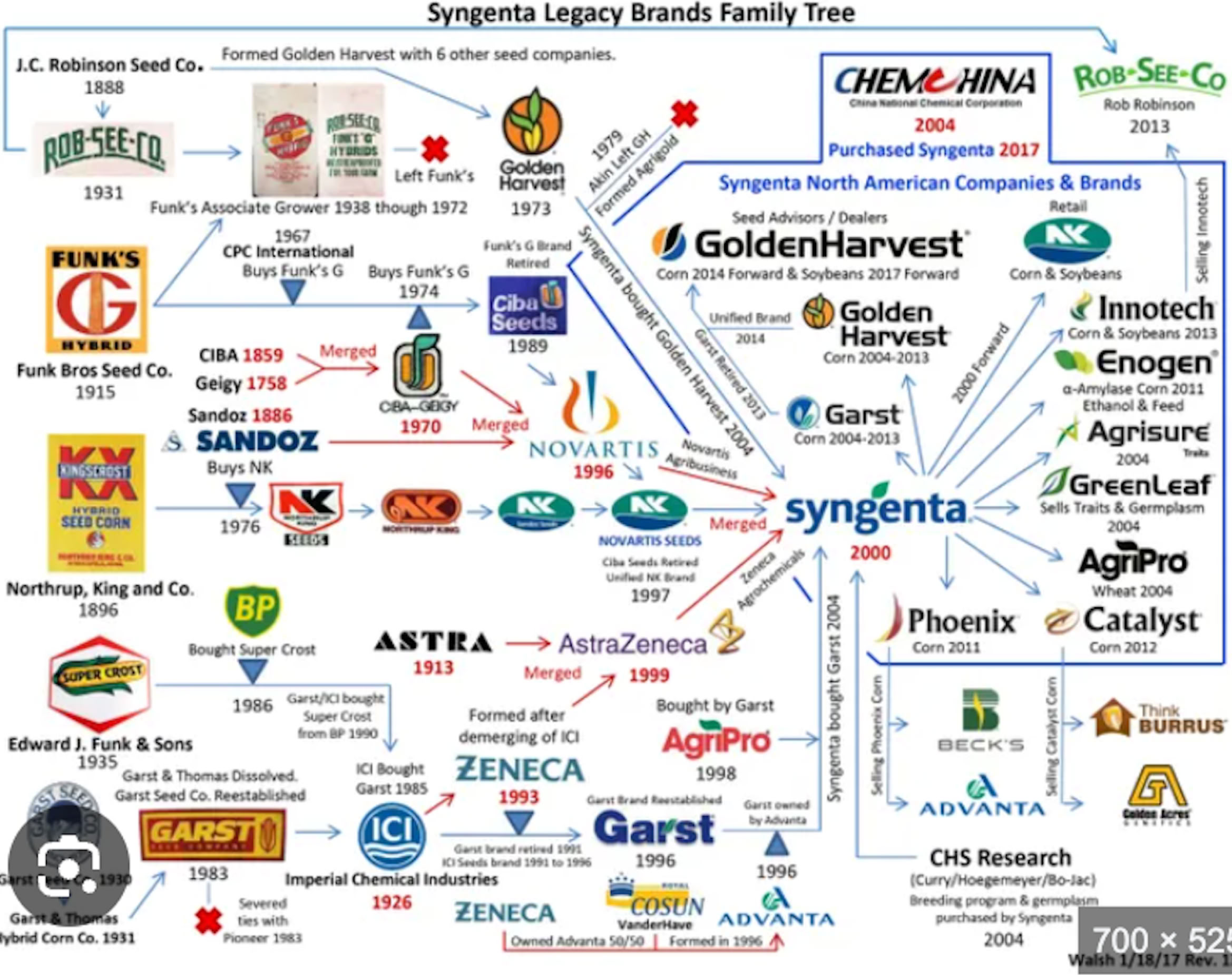 Syngenta was founded in 2000 by the merger of Novartis and AstraZeneca. The Swiss giant was bought in 2017 for $43 billion by ChemChina, which was folded into Sinochem Holdings Corp. In 2020, the Syngenta Group was formed, bringing together Syngenta, Adama, and the agricultural business of Sinochem under a single entity. In October 2022, the United States Department of Defense added ChemChina, owned totally by the Chinese Communist Party, to a list of "Chinese military companies" operating in the U.S.