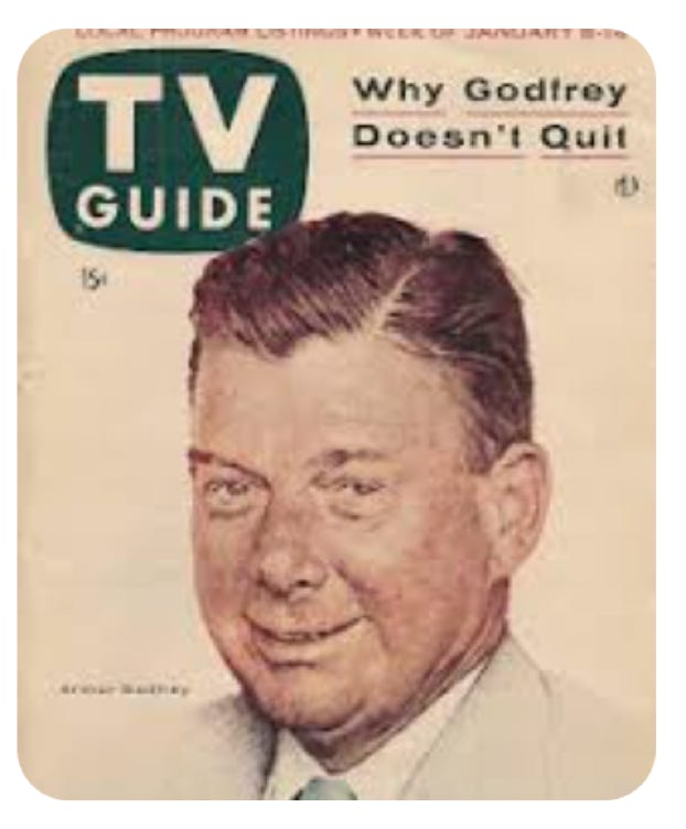 Mom was a big fan of Arthur Godfrey whom she alternately watched on TV, or if too busy, listened to the simulcast on the radio. There were times when Arthur was radioing in the kitchen and televising in the living room simultaneously. It was a bit confusing in the dining room where you could hear both because the audios were not perfectly in sync with one another.